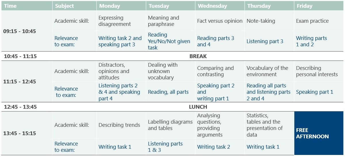 Può essere svolto separatamente o prima di iniziare l’opzione 5 (preparazione IELTS) o il corso dell’esame IELTS – IELTS 28.